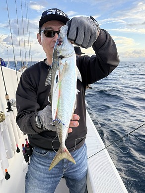 午後から時化予報なので午前中の短時間勝負で沖のポイントまで行きました。