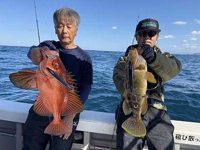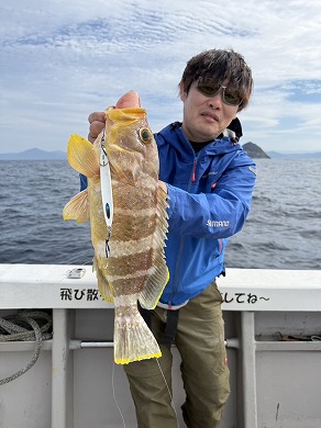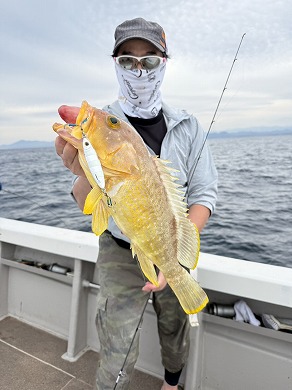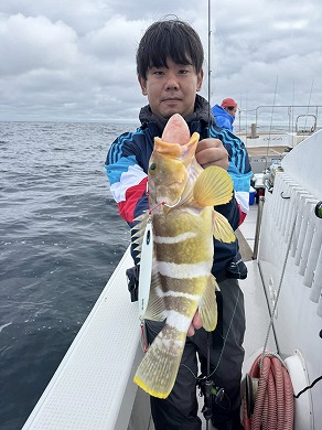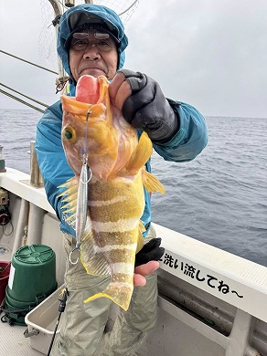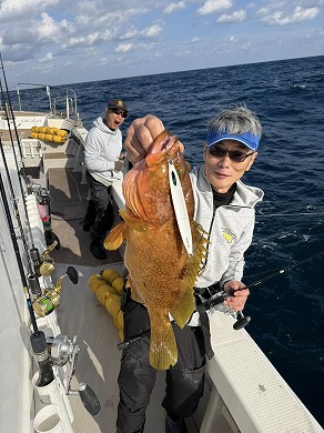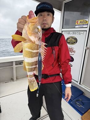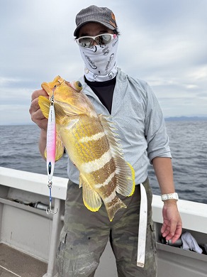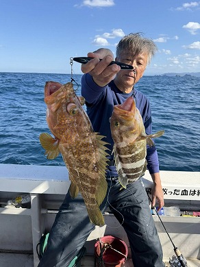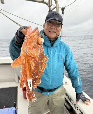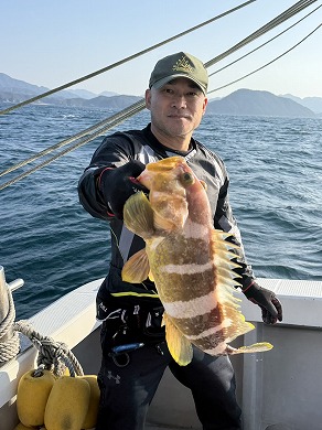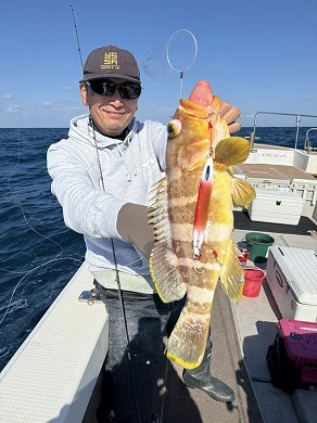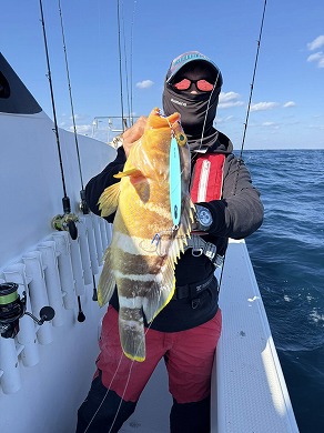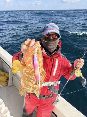 | マスクマン、ケンジグ変態おじさんカラーでカサゴ〜 | 山内さん、グローでアコウゲット〜 |