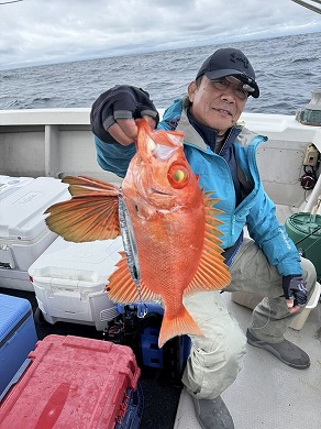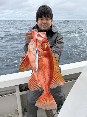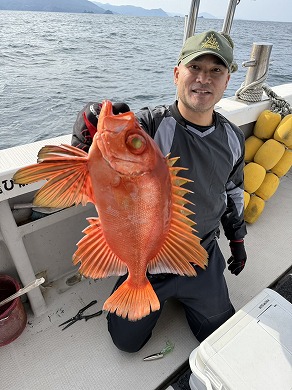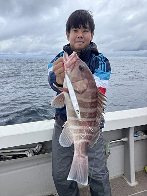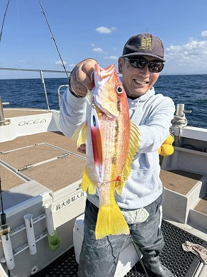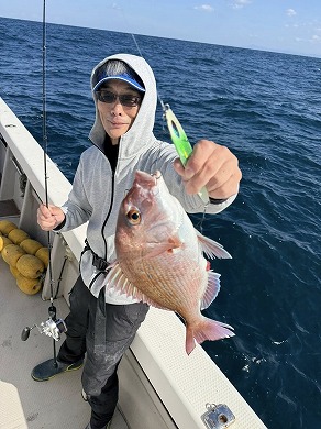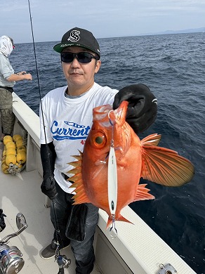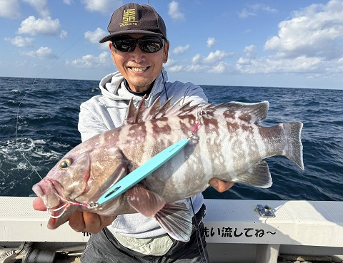 | 益本くんケンジグシルバーでチカメキントキダイ49㎝😍 | 岩本さん深場の新規ポイントで😍 |
