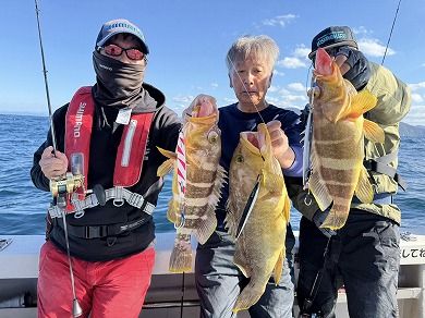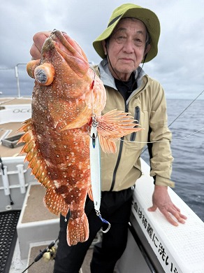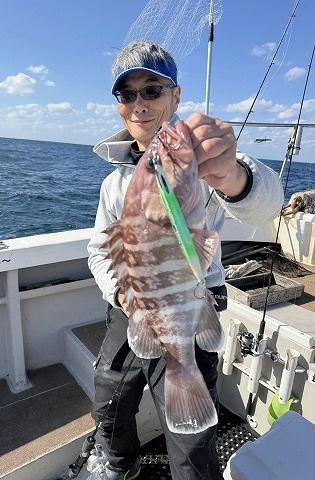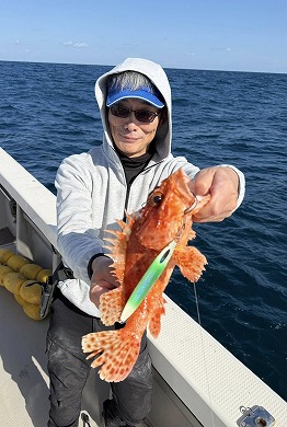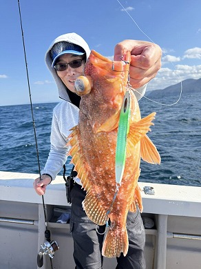 | 雪野さんも深場の新規ポイントでアオハタ 和田船長インチクで釣れましたね😍 | |