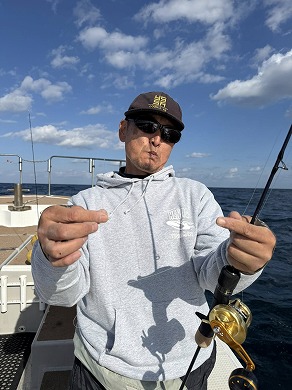 | 変態おじさん、ケンジグ船長復活カラーで、オニ〜〜 | 山内さんも良型を〜 残念😢 |